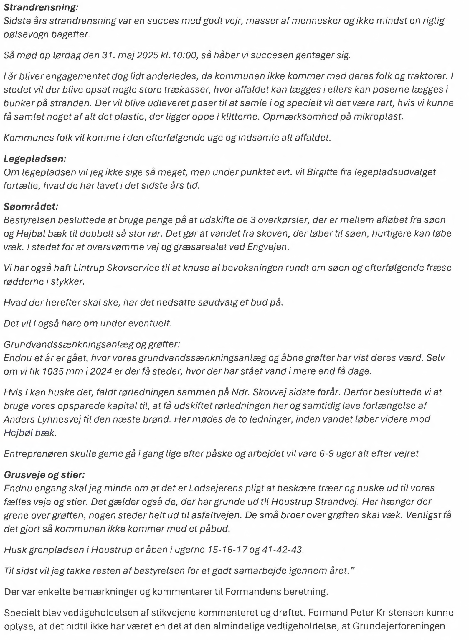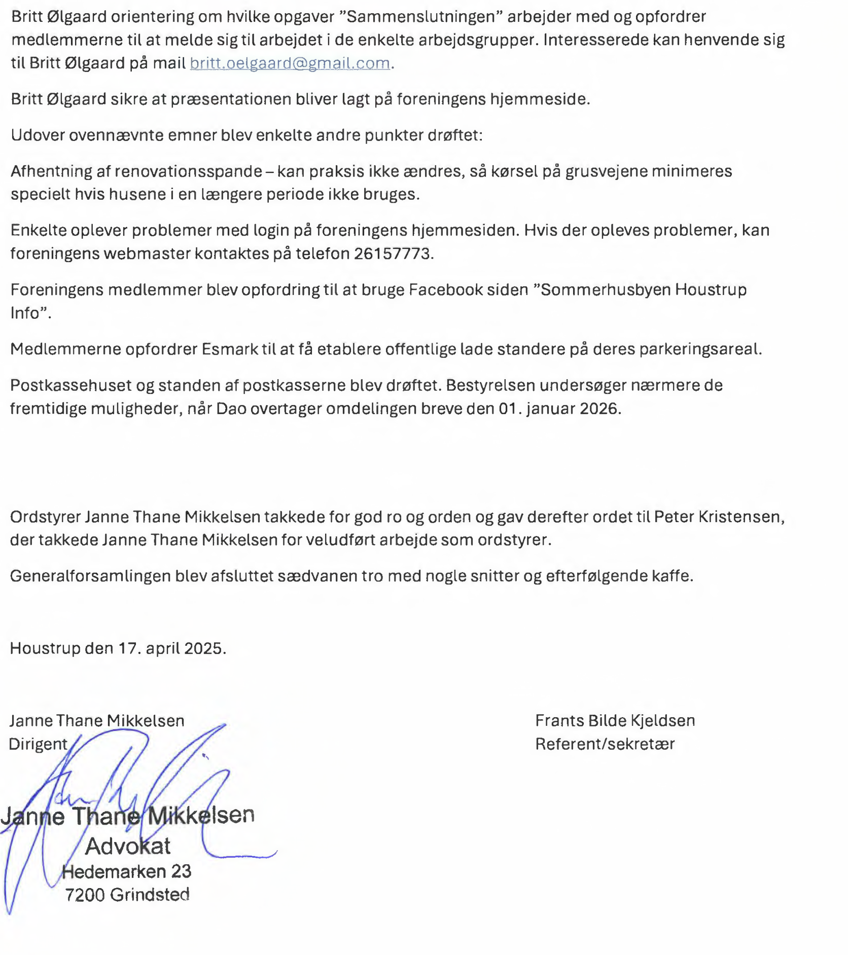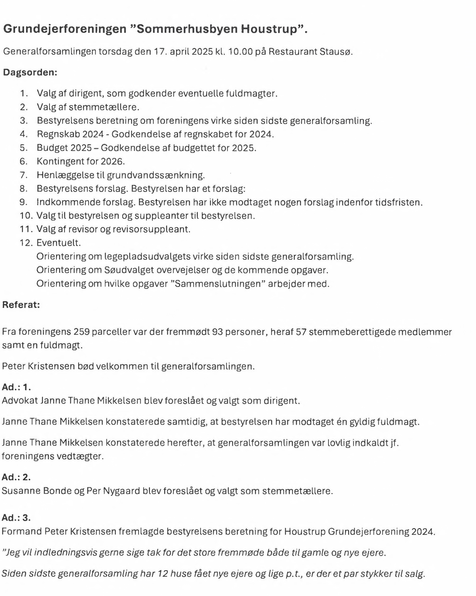 Bestyrelsesmødet i Sommerhusbyen Houstrup den 18. september 2025