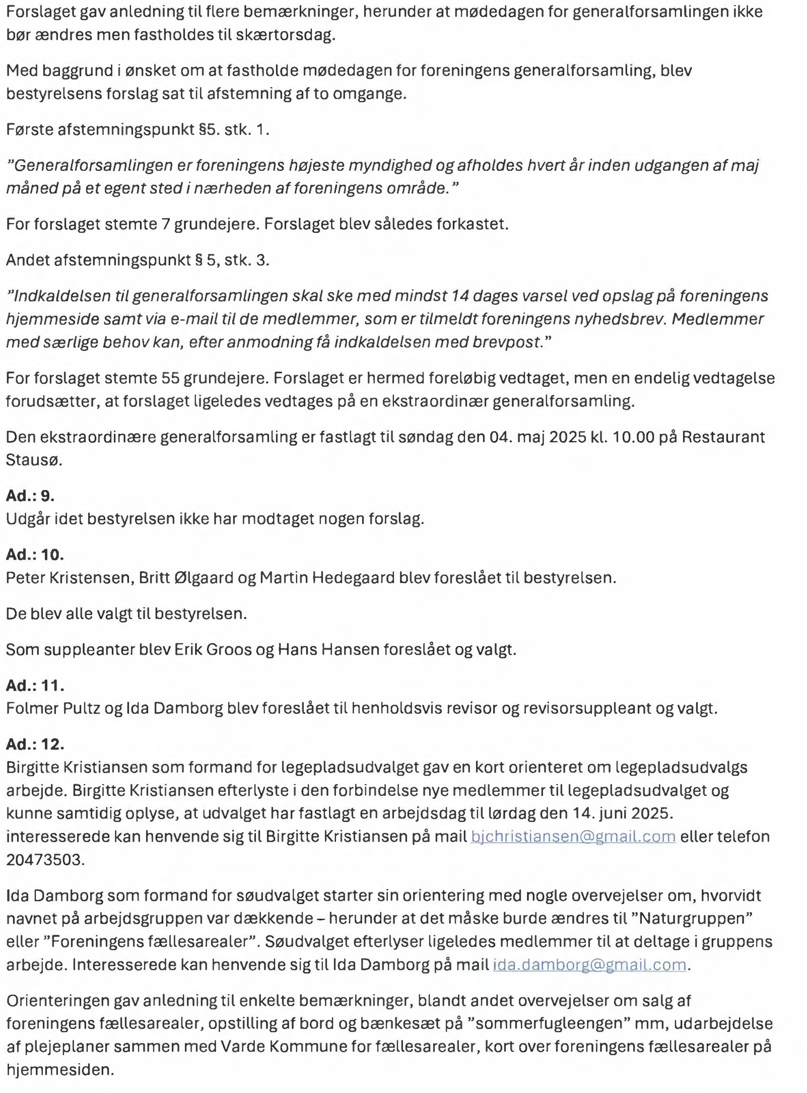 Ekstraordinær generalforsamling søndag den 04. maj 2025